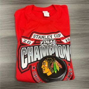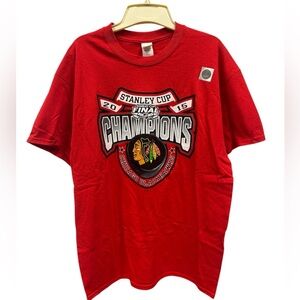 Chicago Blackhawks 2015 Stanley Cup Champions Red T-Shirt Men’s Large Gildan NHL