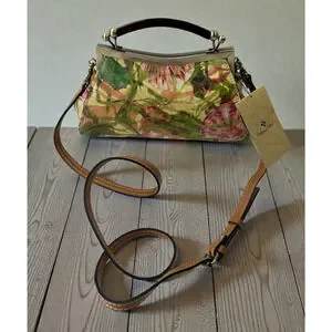 NWT Patricia Nash Kelmscott Frame Bag Leather Satchel Crossbody Seashells Floral