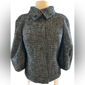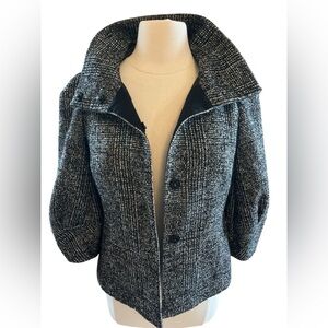 Ann Taylor Black, White & Blue Wool Bland tweed Blazer with 3/4 slight puff sleeves.