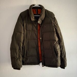 Tommy Hilfiger Men's Dark Green Puffer Jacket - excellent condition - no size tag that I could find, fits a size large best. Measurements available upon request!