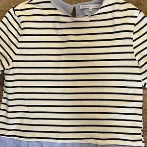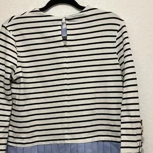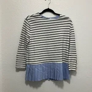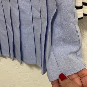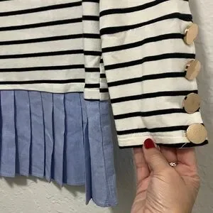 English Factory Preppy, Classic, LNWOT striped long sleeves with bold gold tone buttons.. denim style pleated hemline.. comfy cozy. Measurements in the photos wish it fit me.. PTP is 17 inches 25 inches long. Cotton blend medium fits like 8-10