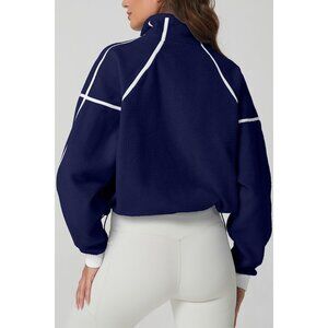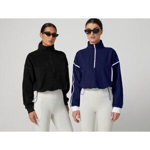 Women's Navy Half Zip Fleece Short Pullover Long Sleeve Cozy Sherpa Sweater