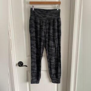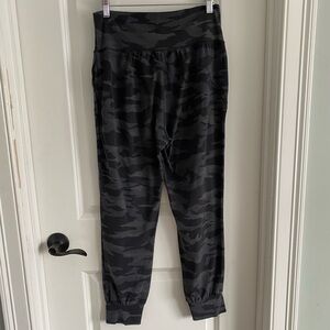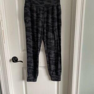 Comfortable joggers with a black camouflage pattern. Ideal for everyday wear.