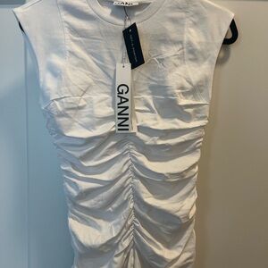 Ganni White Cotton Ruched Top