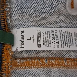 LARGE. HALARA FLEX MID RISE DRAWSTRING BARREL LEG JEANS