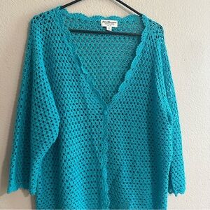 Vintage Norm Thompson Linen Blend Crochet Cardigan