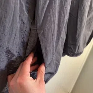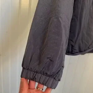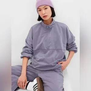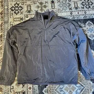 Stay stylish and comfortable with this sleek gray pullover jacket. Perfect for any casual outing. This has a windbreaker look to it.