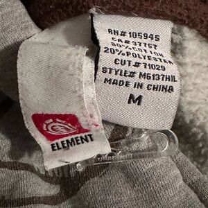 Vintage Element full-zip hoodie featuring an all-over "wave" or "grunge" pattern in brown and off-white colors. Originating from the early 2000s (Y2K era), these hoodies are associated with the Element skateboarding brand and are considered a vintage streetwear item.