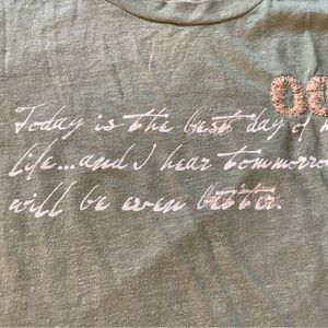 Stylish olive tee featuring motivational script. Perfect for casual wear. Gently used in good condition. Runs small and fitted.
