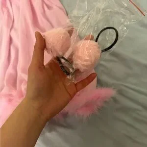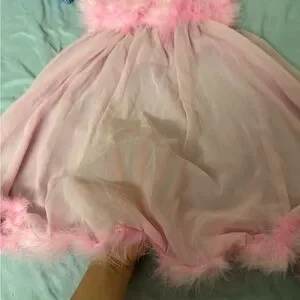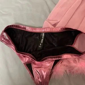 Pink Dollskill lingerie set. Comes with gloves, underwear, sheer fluffy top, size 7 kitten heels and Pom poms. Never worn. Women’s size small.