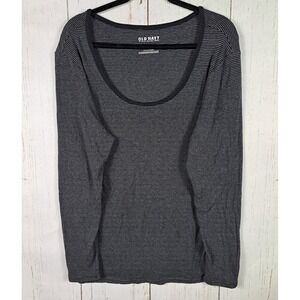 Old Navy Size XL Womens Black Gray Striped Stretch Long Sleeve Top
