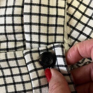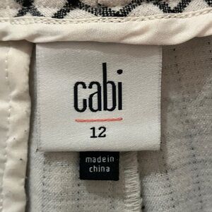 Chic CAbi garment with a black and white pattern. Versatile and stylish. Used no stains, windowpane design cotton blend waist measurements are 18 inches wide by 30.5 inch inseam.. stretch comfy cozy for work