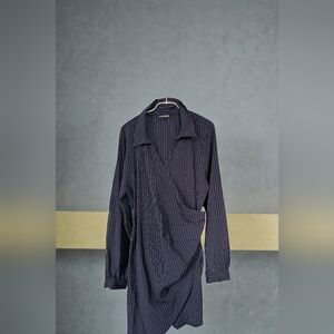 Fashion Nova Valeria Pinstripe Mini Dress - Navy Size 1X (14/16) (NWOT)