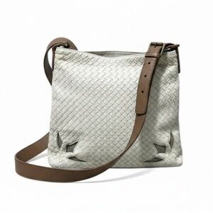 Bottega Veneta Intrecciato Cutwork Crossbody/ Shoulder Bag Ivory/Tan