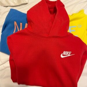 Vibrant Nike hoodies with bold logo designs. Perfect for casual wear. Size 6 & 7 like new
