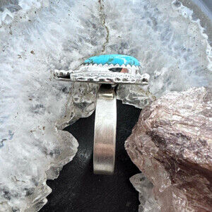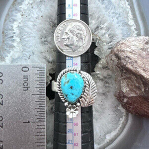 Gorgeous Sterling Silver Southwestern Style Teardrop Turquoise Decorated Adjustable Ring For Women.