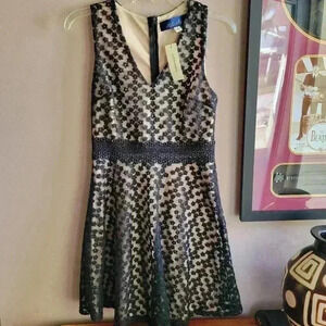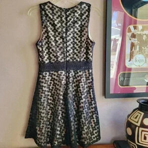 Brand New Francesca's Blue rain Women's Midi Dress Small Flare Black Lace Zipper