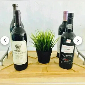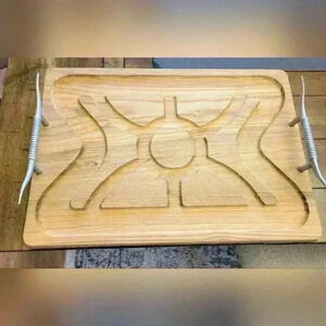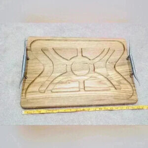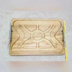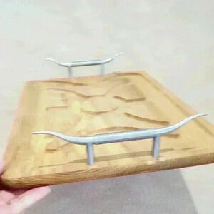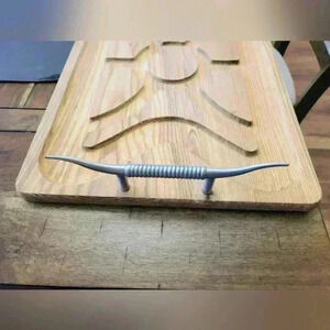 vintage wood serving tray metal longhorn handles very solid excellent condition