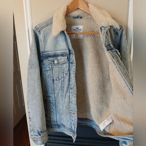 Hollister Faux Shearling Lined Denim Trucker Jacket Women's Medium