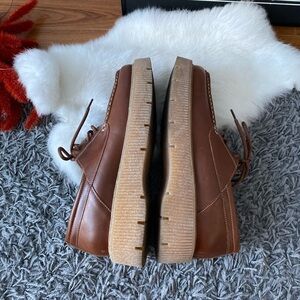 These feature a classic moc-toe design with contrast stitching and a trendy chunky, crepe-style platform sole for a comfortable lift. Made from quality leather, they're built to last.