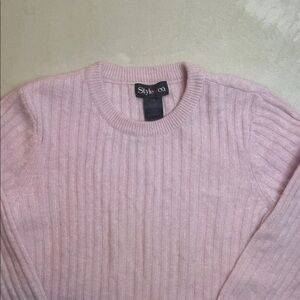 Style & Co. Lambswool Angora Blend Soft Pink Ribbed Crew Neck Sweater sz L