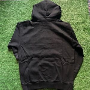 Elevate your style with this black crewneck sweater featuring a bold graphic design. Perfect for any casual occasion.