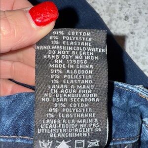 Chic flare jeans with a dark blue wash. Features stylish frayed hems, and slit.