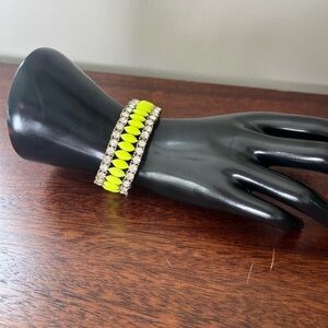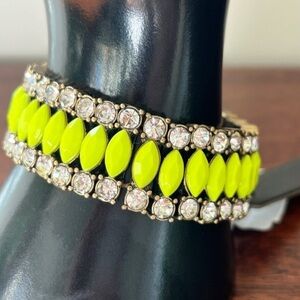 JCREW NWT rhinestone brass neon yellow stretch bracelet prom