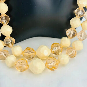 Vintage Beaded Necklace Signed Germany Double Strand Faceted Peach Cream…
