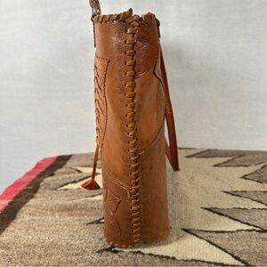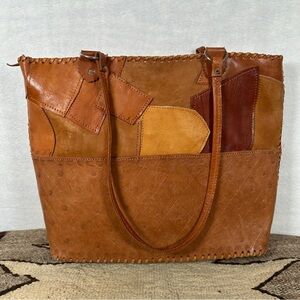 Vintage handmade western tooled Leather Shoulder Bag patchwork purse large tote