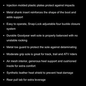 The O’Neal Rider Boots deliver excellent protection and performance thanks to the metal shank reinforcements paired with the injection-molded plastic protective plates.