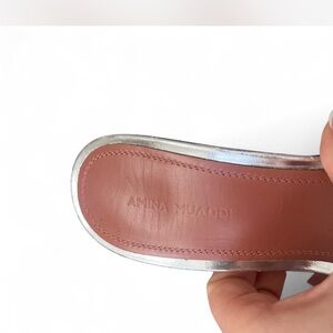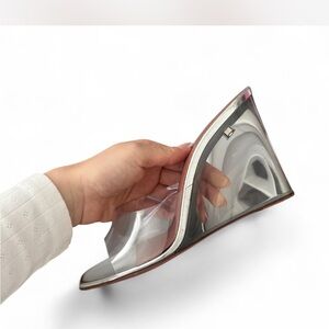 Amina muaddi clear glass wedge . I tried my best to include all images of the wear from the heels. Size 38 but runs small