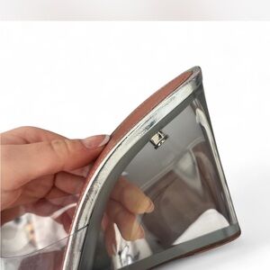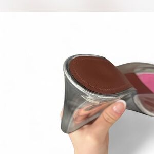 Elegant wedges with a transparent design. Features a sleek silver and brown color combination. Perfect for a modern look.