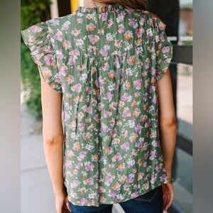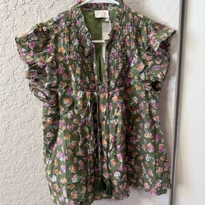 NWT Fate Green Floral Blouse with Ruffle Details Size Medium