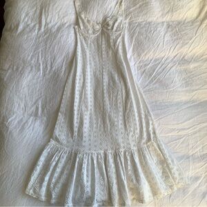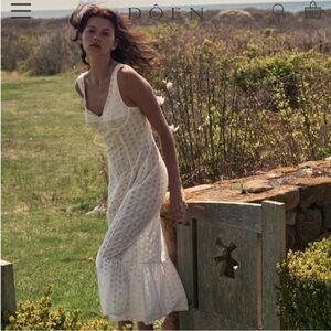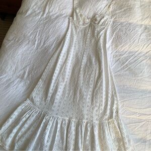 Doen Melaine Cotton Eyelet Bustier Ruffle Maxi Dress Salt Melanie White