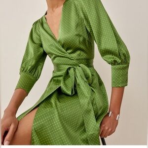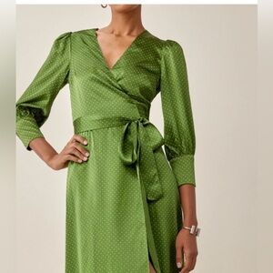 NWOT Reformation Merrick Dress polka dot Peat color 100% silk XL