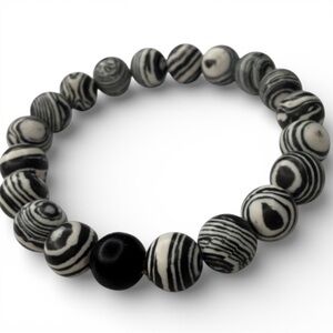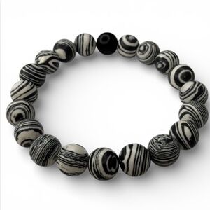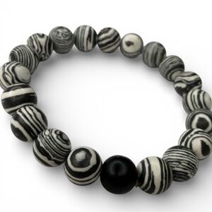 Handmade Black & White Malachite 8 mm Beaded Stretch Bracelet
