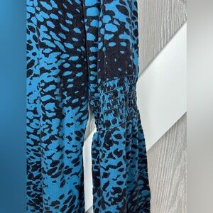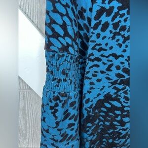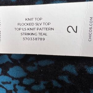 B14.25 NWT Chico's Teal Blue & Black Velvet Flocked Balloon Sleeve Knit Top 2