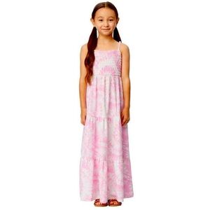 32 Degrees Youth Smocked Maxi Dress, Pink Tie Dye, Medium 10/12