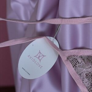 Elegant pink lace thong by Avidlove. Features delicate lace details.