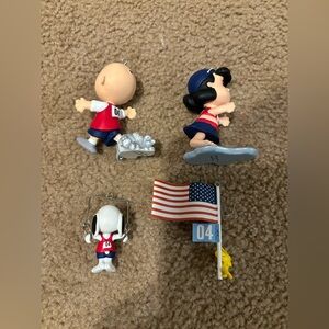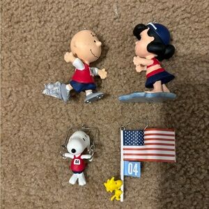 Lot Of 8 Hallmark Keepsake Peanut Series. “Santa beagle and friends,””the peanut games,””joes coolest,” and “beagle scouts campfire.” All are in great condition except for”Joe’s Coolest,” does have a broken yellow bird (shown in pictures).