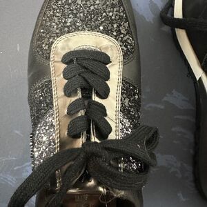 These shoes are black and silver. They are silver around the laces, not gold. Never worn. Size 40.5/9.5