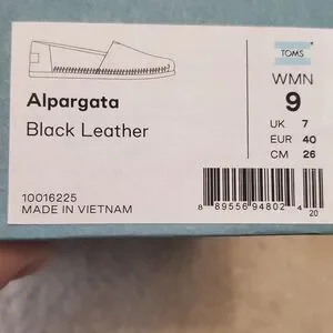 Black Real LeatherToms Alpargata Flats 9 Nearly New