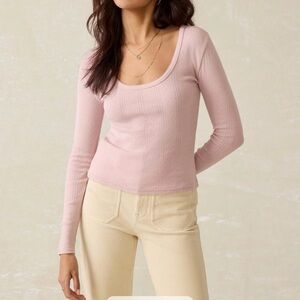 Faherty Pacific Pointelle Top Blush Long Sleeve Feminine Delicate Scoop Neck