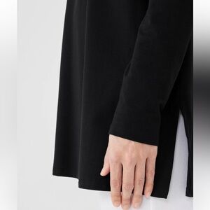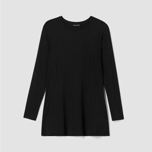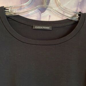 Eileen Fisher Stretch Jersey Knit Crew Neck Long Sleeved Black Tencel Top