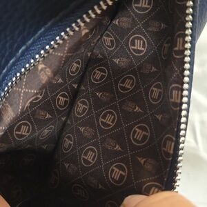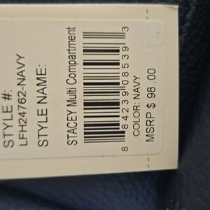 Stylish navy crossbody bag by London Fog. Features silver hardware and multiple compartments.