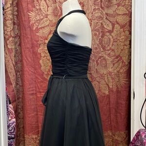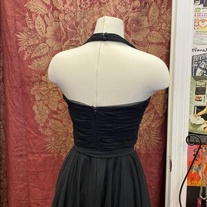 Y2K halter dress with sheer overlay and baby blue detailing at the bottom