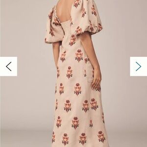 FARM Rio Puff-Sleeve Linen Embroidered Macaw Midi Dress