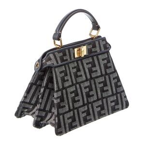 About the brand: Innovative and elegant Italian luxury. Made in Italy Peekaboo ISeeU Petite FF Denim & Leather Tote in blue ff-denim effect fabric and leather and gold-tone hardware Interior design details: divided leather interior Measures 7.8in wide x 6in high x 4.3in deep Top handle drops 3in Adjustable and removable shoulder strap drops 21in Turnlock closure Please note: All measurements were taken by hand and are approximate; slight variations may occur. Our products are 100% genuine. In some cases we purchase merchandise from trusted independent suppliers and not directly from the brand owner. In all cases we stand by the authenticity of every product sold on our site.