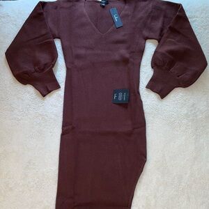 Lulus Autumn Darling Chocolate Brown Balloon Sleeve Midi Knit Sweater Dress